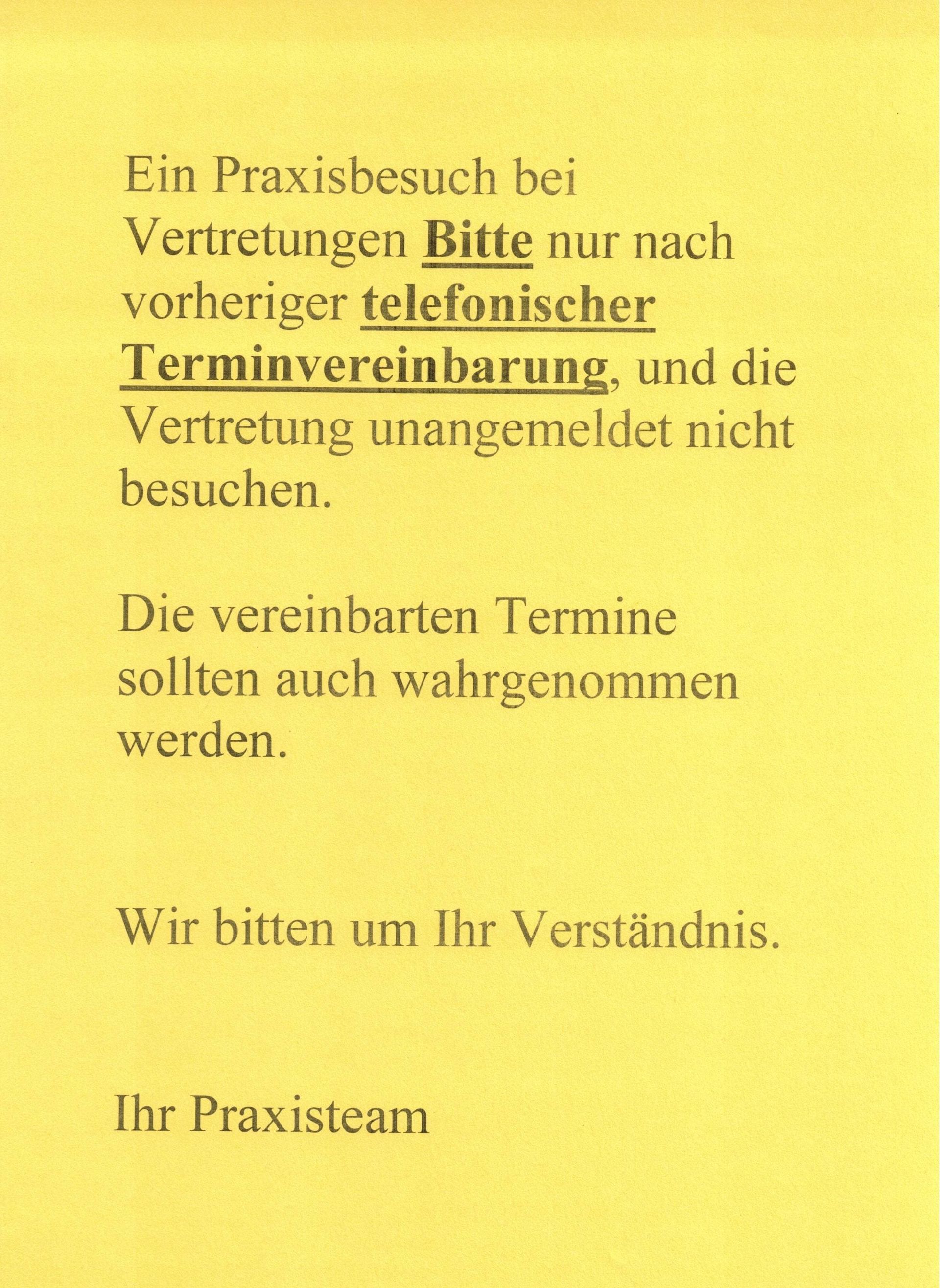 die telefonische Erreichbarkeit der Praxis wird wie folgt: